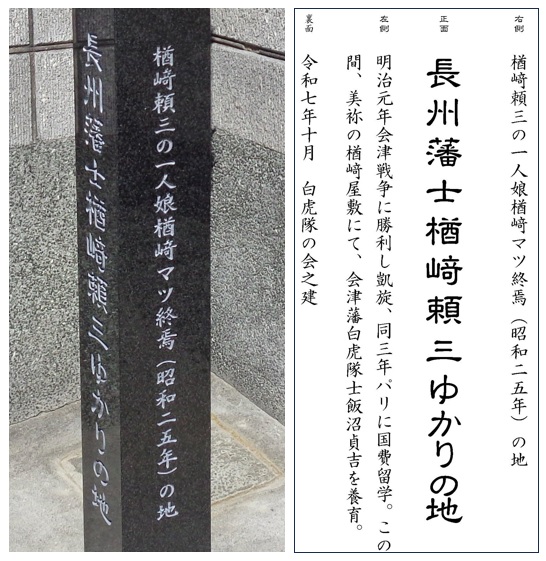 萩市に「楢﨑頼三・飯沼貞吉恩愛の絆」記念碑を設置しました 2025年10月16日