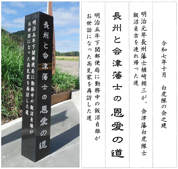 美祢市に「楢﨑頼三・飯沼貞吉恩愛の道」記念碑を設置しました 2025年10月17日