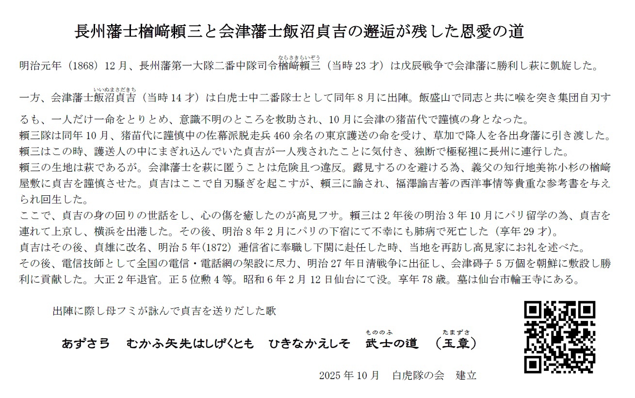 「白虎隊士飯沼貞吉ゆかりの地」説明板 |