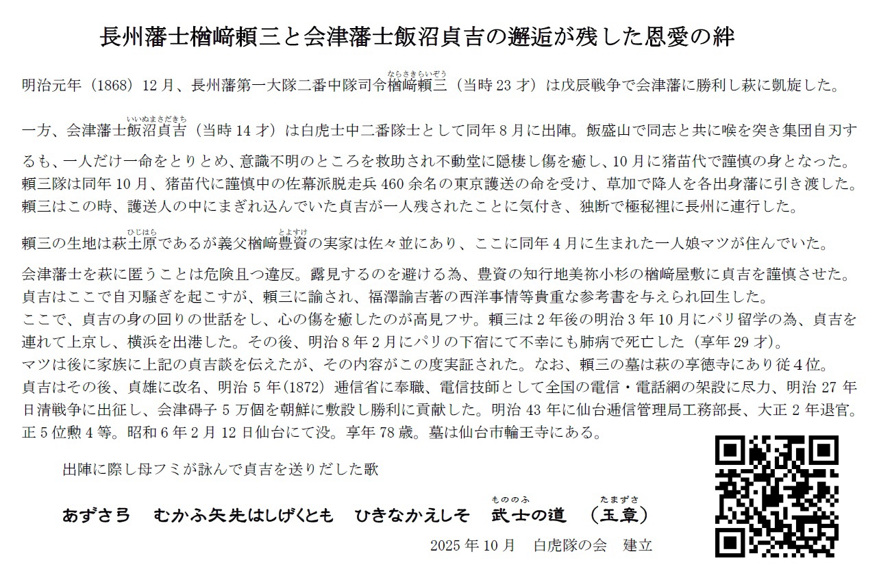 2019.01.30 「白虎隊の会」のホームページアドレス(URL)が変更になりました。⇒http://byakkotai.club